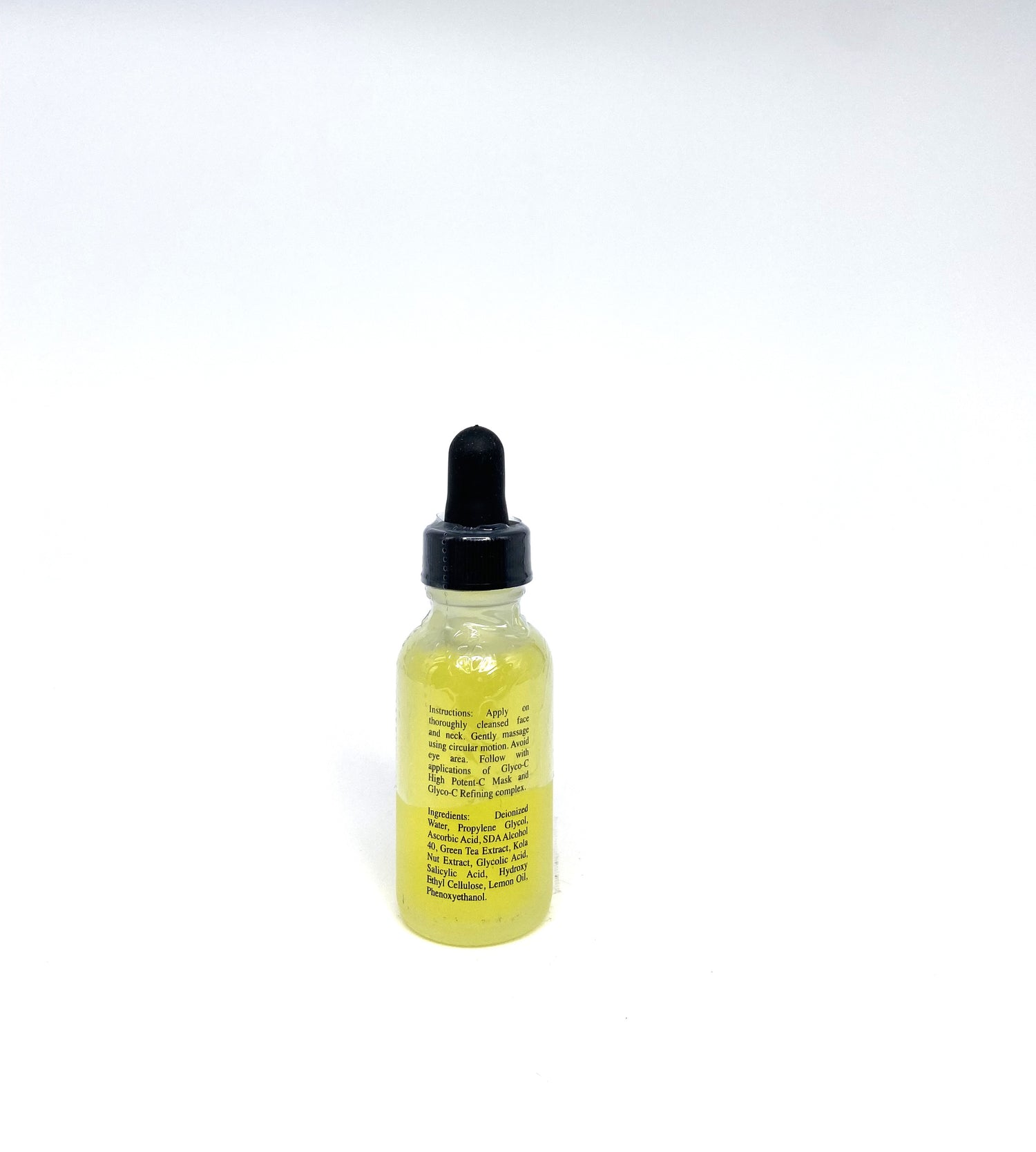 Smoothes fine lines and diminishes wrinkles. Nourishes the skin and refines texture. Assists tissue regeneration. Instantly hydrates. Bares a healthy and radiant complexion.Ingredients - L-Ascorbic acid (12%); Green Tea Extract, Kola Nut Extract, Glycolic acid (10%); Salicylic acid (2%).